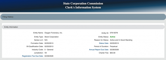 Сьогодні Oxygen Forensics Inc., зареєстрована у США, продовжує співпрацювати з федеральним урядом. Публічні записи відображають чинні та попередні контракти з ICE, ФБР, Управлінням з боротьби з наркотиками, Митною та прикордонною службою і Державним департаментом. Компанія має чинну реєстрацію федерального підрядника до вересня 2026 року та залишається допущеною до участі у федеральних закупівлях.