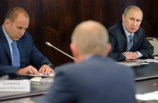 Едуард Бєндєрскій (ліворуч), у ролі президента російської мисливської асоціації, з путіним (2012).