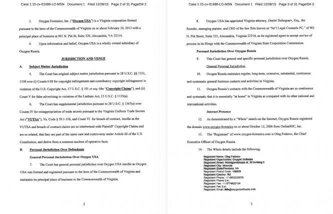 Технічний зв'язок між російською та американською лінійками продуктів став публічно відомим наприкінці 2023 року, коли російська фірма Elcomsoft подала позов до арбітражного суду москви. Вона стверджувала, що MKO Systems використала запатентований код, який дозволяв здійснювати глибоке вилучення даних із пристроїв на iOS, зокрема доступ до паролів, історії перегляду, фотографій та інших захищених даних. Незалежне видання Forbes зазначало, що подібні технічні методи з'явилися в Oxygen Forensic Detective. Хоча справа завершилася мировою угодою в росії, судовий процес привернув увагу до технічної близькості між інструментами, що постачаються російським службам безпеки, та тими, які використовують американські відомства.