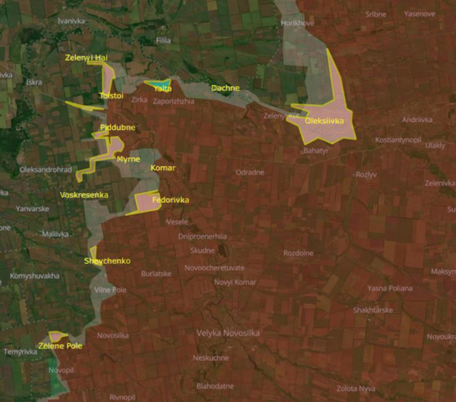 Українців обстрілюють в районі Новоєгорівки. росіяни обстрілюють Зелений Гай. За 2,5 км на північний захід від Зеленого Гаю виявлено та атаковано росіян.