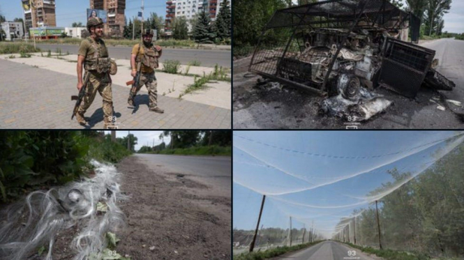Пересування Покровськом стає все більш небезпечним через безпілотники. Шлях перекривають пошкоджені автомобілі, повалені дерева та завали. Сітки над дорогами врятували багато машин і життів, але деякі секції розірвані і висять на дорозі, ускладнюючи проїзд. Навіть якщо вони не перекривають дорогу, сітки провисають так низько, що в них заплутуються антени.