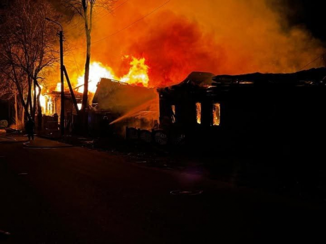 Пожежа, спричинена масованим ударом БпЛА "Герань-2" по Новгороду-Сіверському рано-вранці 7 грудня…