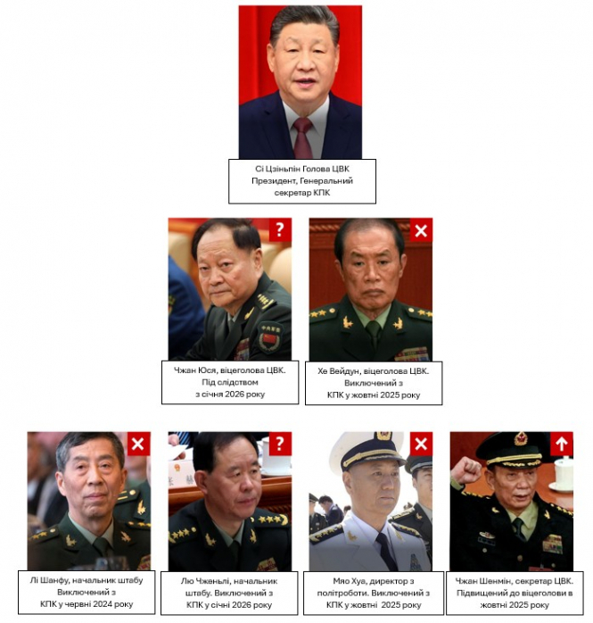 Китай переживає безпрецедентну кризу у вищому військовому керівництві: під слідство потрапив генерал Чжан Юся, найближчий військовий соратник президента Сі Цзіньпіна та друга людина в командуванні Народно-визвольною армією Китаю. Серед підозр, про які повідомляють західні медіа, – можливий витік даних про ядерну програму до США та корупція, що ставить під сумнів стабільність китайського військового командування в критичний момент напруженості навколо Тайваню. З семи членів Центральної військової комісії, призначених у 2022 році, п'ятеро вже потрапили під антикорупційні розслідування, що свідчить про глибоку кризу довіри у верхівці китайської армії.