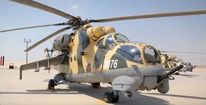 Два з трьох бойових гелікоптерів Мі-35 ВПС Єгипту, представлені під час огляду військ і техніки, які незабаром відправлять до Сомалі. Показово: спочатку їх придбали ОАЕ для навчання лівійських екіпажів (принаймні тих, хто лояльний до "маршала" Хафтара) в Єгипті…